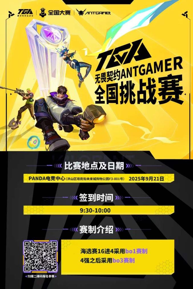 当电竞热情撞上专业网咖,无畏契武汉一场属于江城玩家的全情开线下电竞赛事狂欢即将启幕——2025TGA 无畏契约ANTGAMER全国挑战赛联盟赛道赛事 ,将于9月21日登陆PANDA 电竞中心,国挑为武汉乃至周边的战赛战无畏契约爱好者搭起竞技与狂欢的舞台!